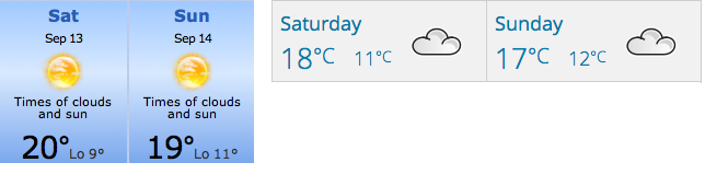 Weekend prospects Posted by2011September 10, 2014September 10, 2014Posted inClub Activities, Excursions, Social Life Two slightly conflicting views on the weather for this weekend. I think we’d happily settle for either, given our recent luck with weekends away!