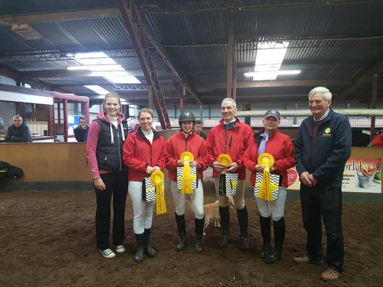 Today was a day for firsts in other ways as ‘Bonzo’, aka Ballylennon Duke, produced his first double clear to keep his team in the running for the jumping prizes, while Regina Toland joined us for her first ever team challenge. I have a feeling that Regina may have bought her sat nav from the same shipment as Tanya and Rachel did….we’ll say no more! Today also saw Jayne Robinson join the Letterkenny ranks as a new member. You’re very welcome Jayne. Fortunately we know you of old and know your sense of humor will fit right in. A very special mention must be given to Cliff’s noble mare, Sally Clover Supreme, who rose above the indignity of being called Sally Clover Hill for the day, to jump four absolutely foot perfect rounds for two different teams, carrying both Cliff and Rachel without so much as a swish of the tail in complaint. I hope she got an extra scoop tonight.